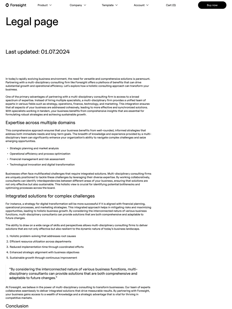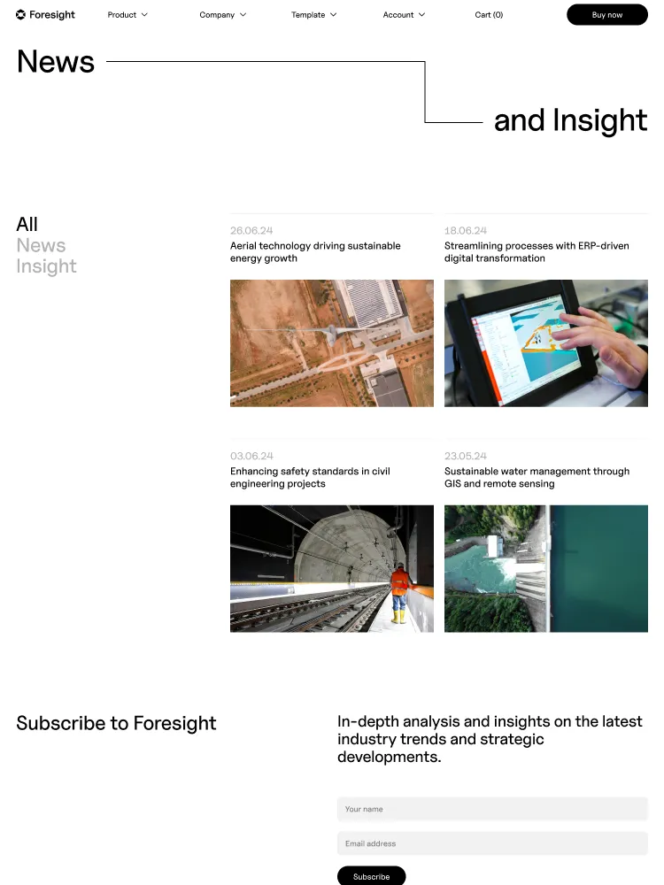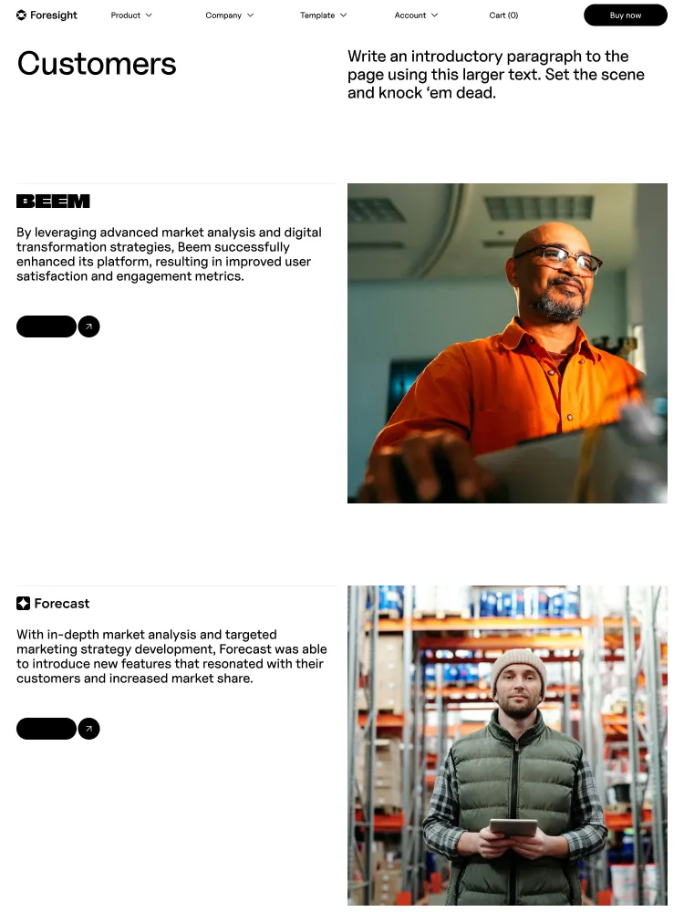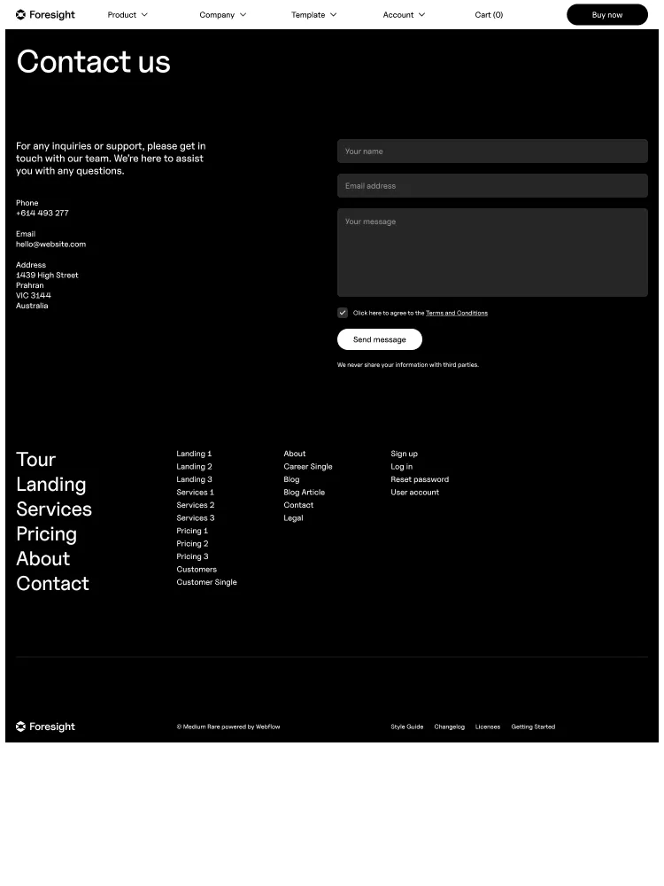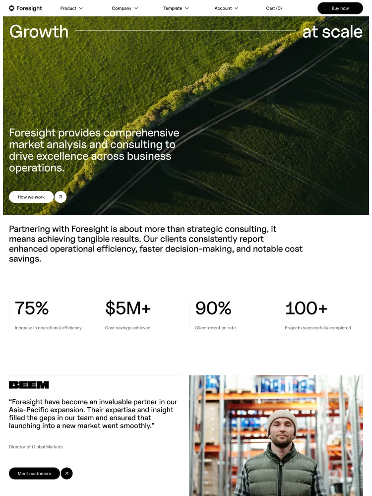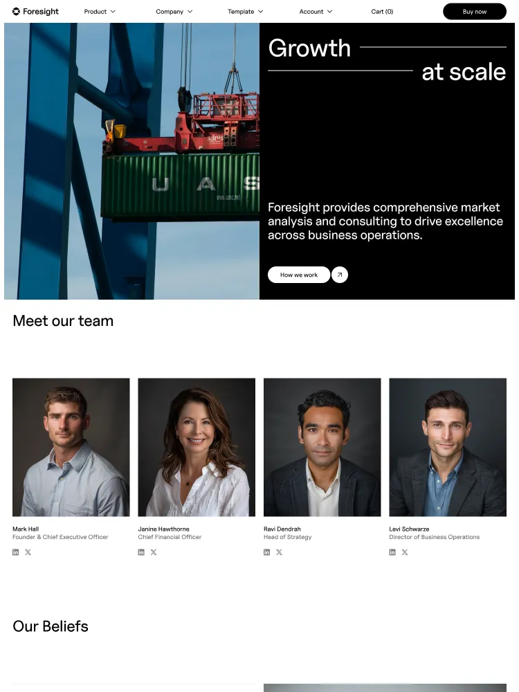 Foresight includes everything you’ll need to launch a stylish site. Layouts for common use-cases such as Product Features, Company and Accounts make it simple to hit the ground running.
