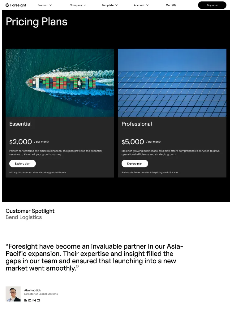 Building robust, stylish pages is a snap with Foresight’s plethora of section designs. Simply copy and paste sections to construct your perfect page.